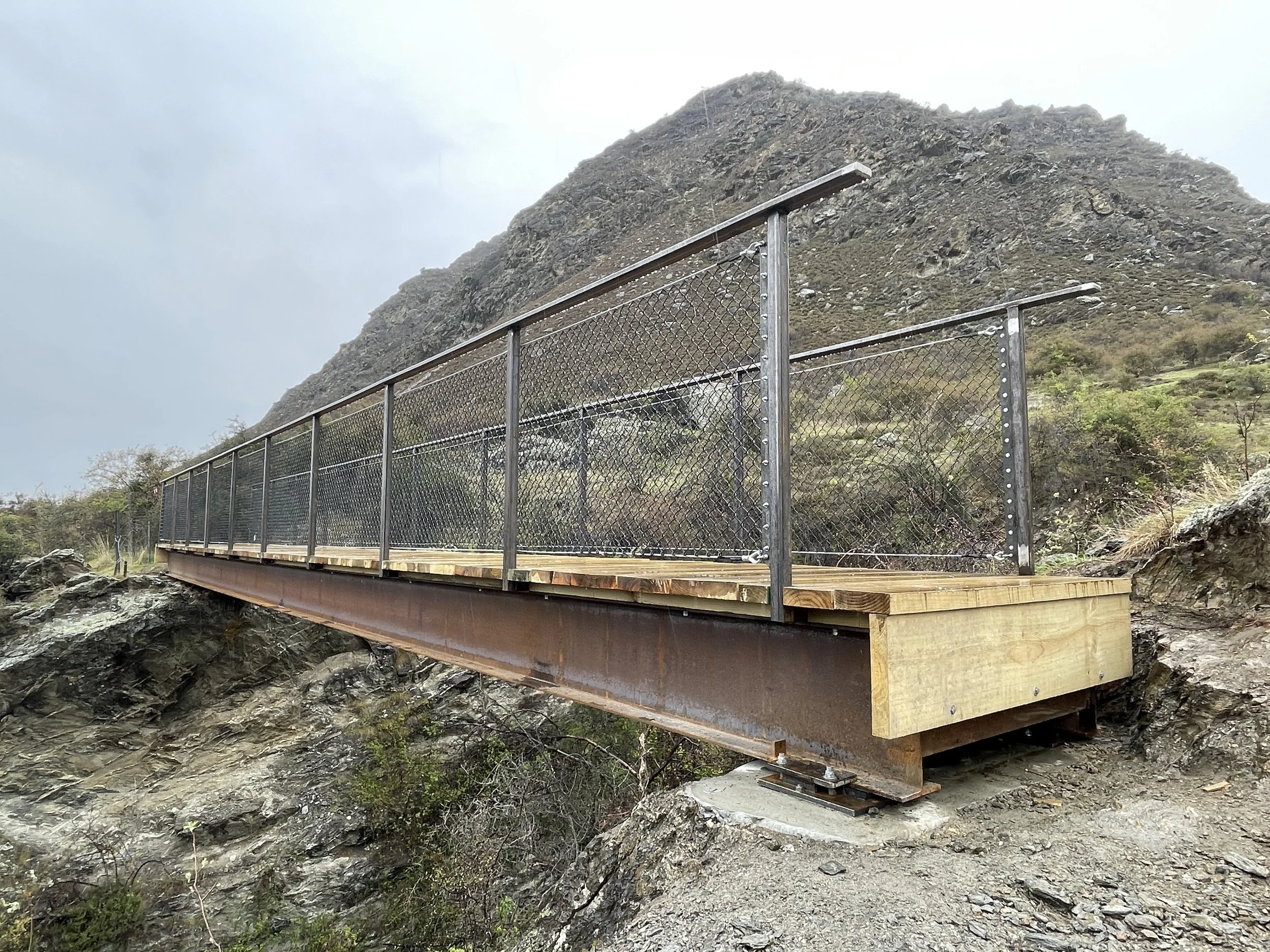 Kawarau Gorge Cycle Trail project represents a bold and ambitious undertaking, designed to enhance outdoor recreational opportunities in one of the most stunning natural landscapes. This contract encompasses the construction of multiple suspension bridges, extending from 75metres - 120 metres, the engineering of eight robust cliff-mounted bridge structures capable of supporting loads of up to 6 tonnes, the delivery of 9-kilometer portion of trail through terrain characterized by extremely challenging geological conditions, demanding access strategies and intricate logistics planning.